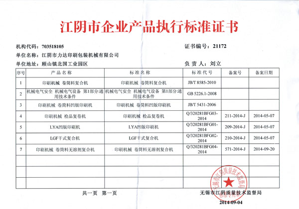 面對日益競爭激烈的市場,企業(yè)導入了先進的管理模式,引進中、高級技術人才和管理人員,不斷加大技術創(chuàng)新力度和開發(fā)水平,強化產(chǎn)品質量管理,推行并通過了ISO9001~2000質量管理體系認證,成立凹版印刷機械專業(yè)研究所,逐步建立健全了從研發(fā)設計、加工制造到銷售服務全過程完善的質量保證體系。公司先后榮獲"質量、信譽雙保障示范單位"和"技術創(chuàng)新十佳單位"。